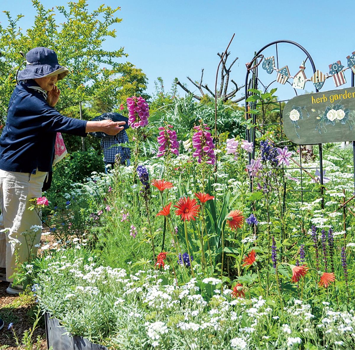 綾瀬市吉岡の加藤照美さん(73)宅の約600坪の庭で、100種類を超える草花が見ごろを迎え、訪れる人たちの目を楽しませている。