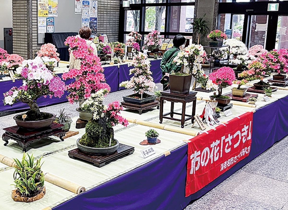 同研究会は、同市の花「サツキ」の普及と緑化推進に取り組む市民グループ。今年は会員から約30点が出品された。海老名市は市制施行の翌年の1972年に市民の投票で市の花を「サツキ」とした。