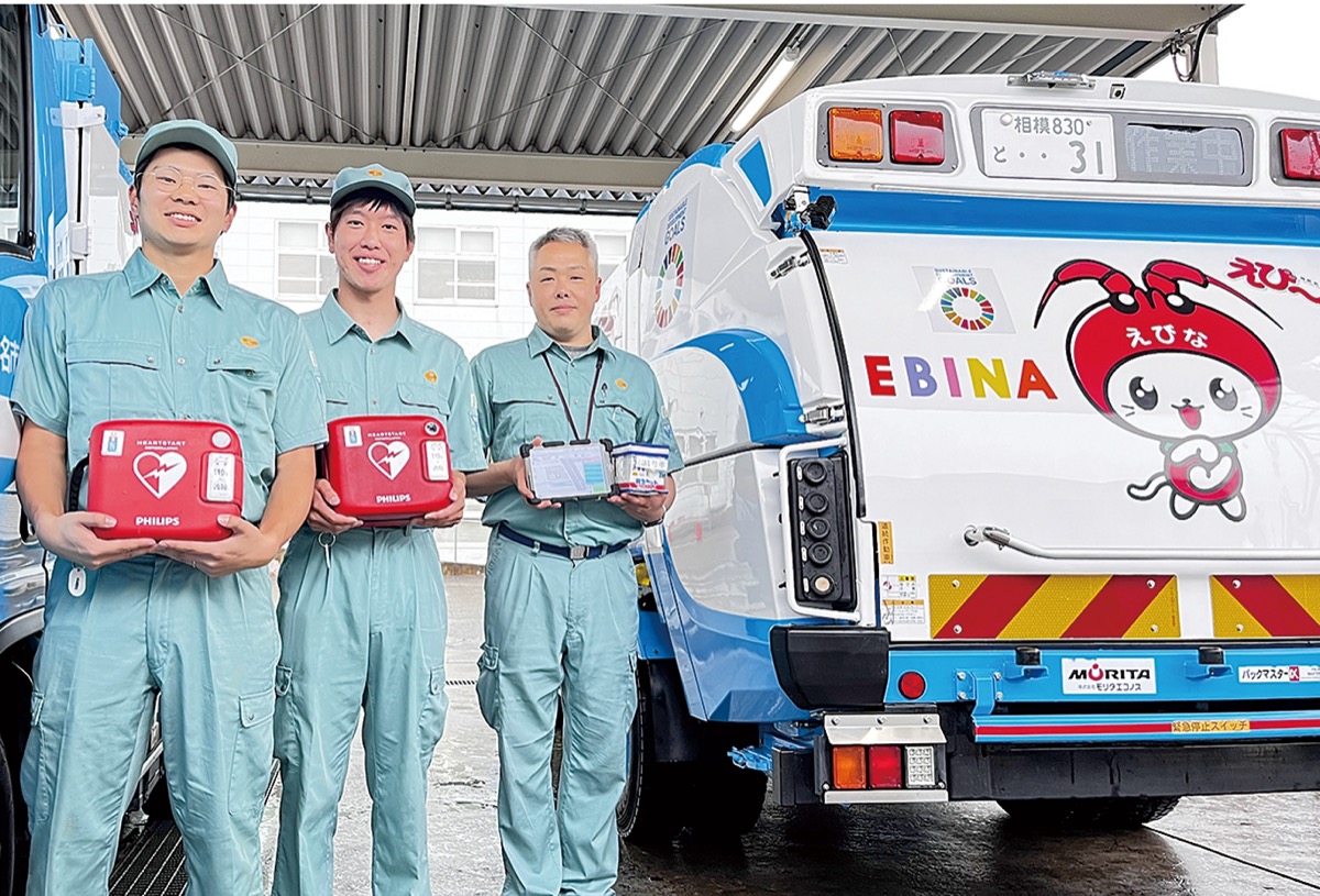 同市直営の家庭系可燃物(ごみ)の収集車は、同市杉久保北の「海老名市美化センター」(市川慎一郎所長)を拠点に委託車両6台とともに12台が運行している。2019年秋の家庭系ごみ収集の一部有料化にあわせて戸別収集を開始すると、職員間で市民サービス向上の機運が高まり、不測の事態に備える収集時の救命活動が検討された。