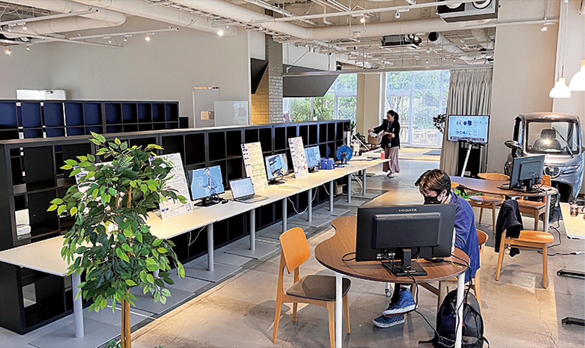 開設した「スタジオ」では、このトライバスから生まれた8ジャンルの製品やサービスが常設展示され、予約制で見学ができる。展示のほか、各種体験やイベント、ワークショップ、商談、ウェブセミナーの配信スペースもある。