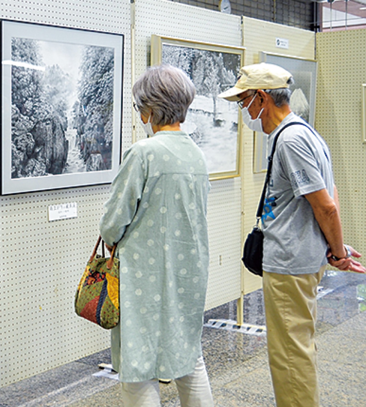 海老名市と海老名市文化芸術協会(佐藤よし江会長=人物風土記で紹介)は、6月20日から23日まで同市役所1階で「えびな小さな芸術鑑賞会」を開催した。同市で活動する鳳墨会(鈴木墨章代表)の水墨画展を実施し、会員17人の力作約30点を展示。来場者を水墨画の世界に引き込んだ。