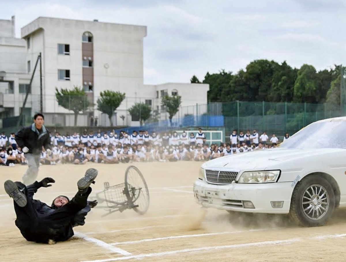 道路上で起こる乗用車やトラック、自転車などの人身事故をプロのスタントマンが再現する教室を最前列で見学した1年生の男子生徒は、「初めて見たが怖いと感じた。普段から左右を確認して自転車を運転しているが今まで以上に気を付けたい」と話していた。