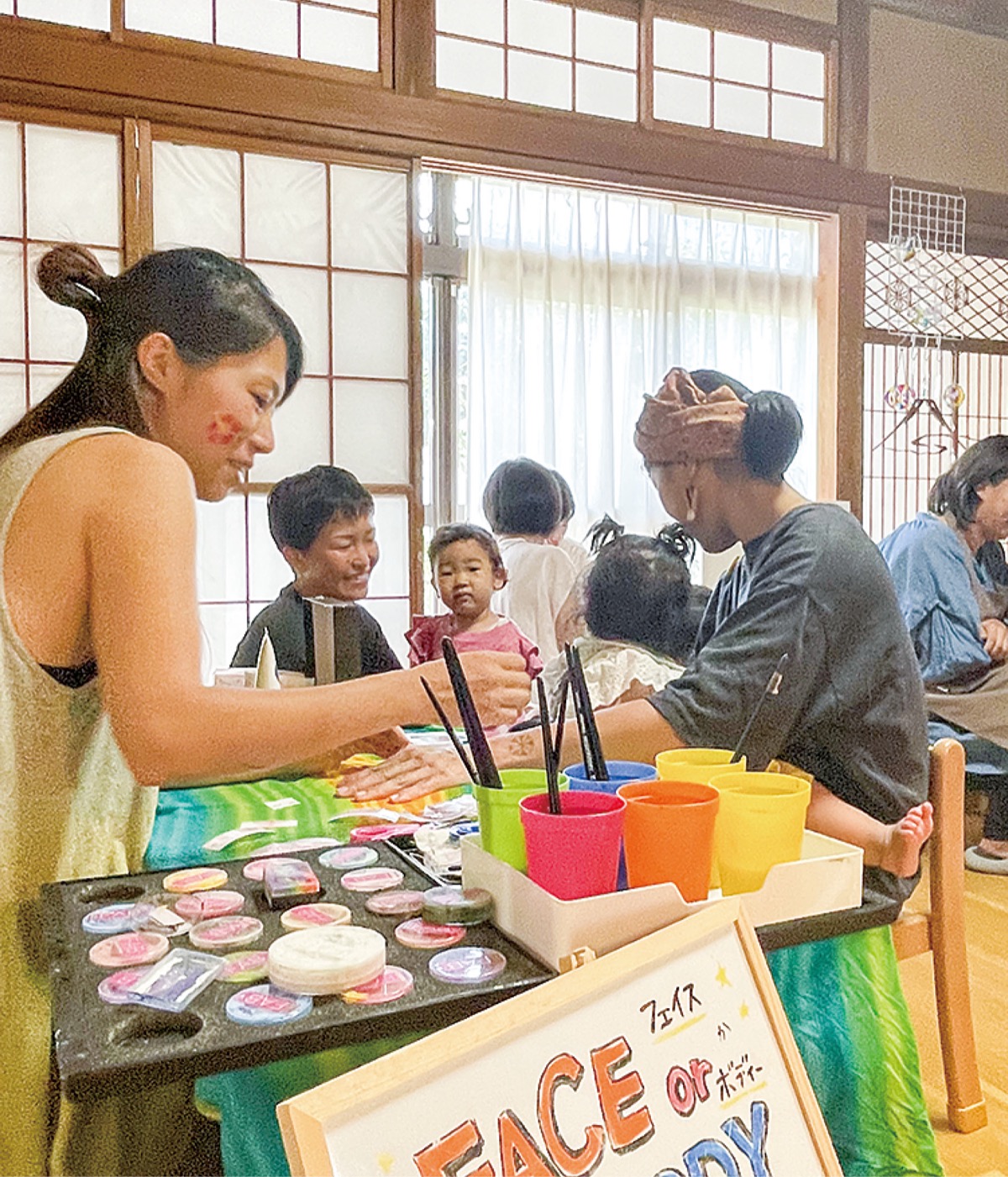 子育て中の母親にリフレッシュするひと時を過ごしてもらおうと、綾瀬市で活動する生涯支援サークルくるり(柏木麻友代表)がこのほど、同市寺尾北のシェアめがねハウスで自然と癒しの学校を催した。近隣地域から参加した大勢の親子がフェイスペイントやディンプルアート、樹のアクセサリーなどのワークショップを楽しんだ。