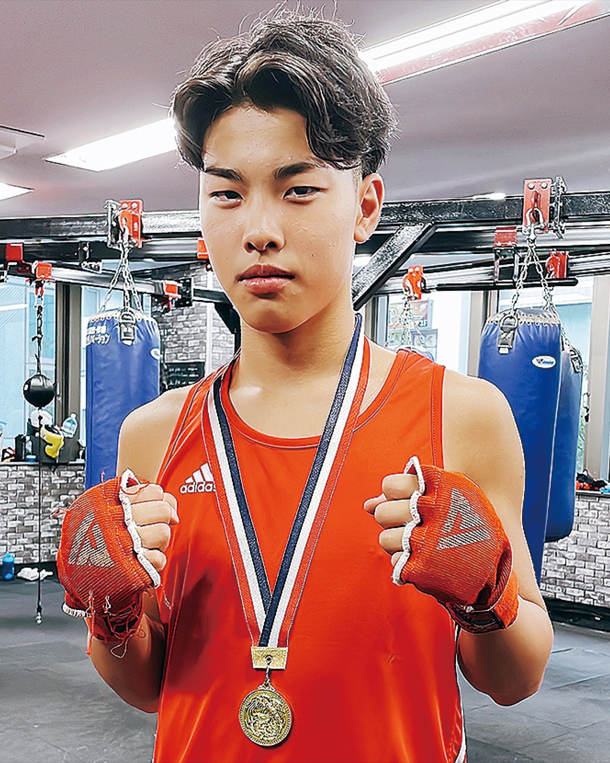年少から空手を習っていたが、親族がやっていた姿に憧れ1年ほど前からボクシングの世界へ。175センチの身長はまだまだ成長中。空手仕込みの鋭い踏み込みを武器に、中学生ながら試合を冷静に見られる落ち着きと、勝負師としての気の強さを持つ。強さの秘訣は「お母さんの唐揚げ」とはにかむ一面も。「勝利できうれしい。場数を踏んで将来はプロに」と意気込んだ。