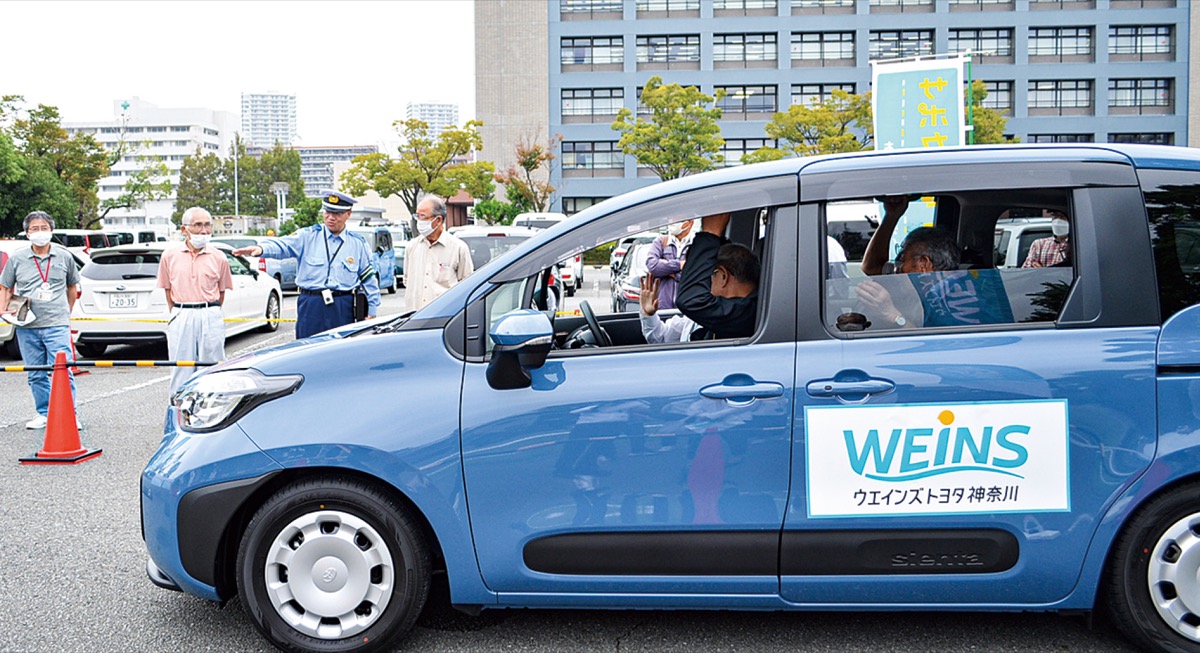 当日は損害保険ジャパン株式会社とウエインズトヨタ神奈川株式会社も協力。安全運転に必要な心得を学ぶ安全運転講習の講師や、75歳以上の高齢者が免許更新時に受ける認知機能検査の模擬体験、サポートカーの準備を行った。