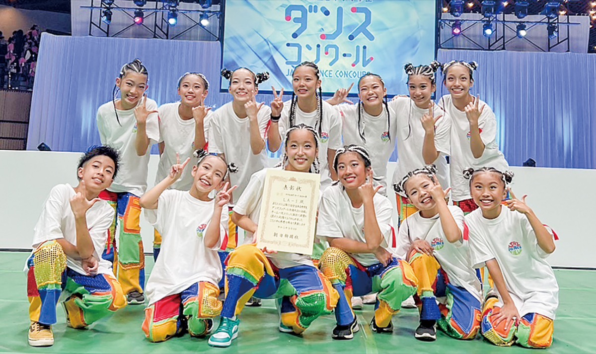 相武台にあるダンススクール「サイ・ダンスフィールド」(主宰・濱島彩子さん)のダンスチーム「LA-1」が、10月14日に代々木第二体育館で行われた第11回全日本小中学生ダンスコンクールの中学生・オープンの部に出場し、金賞を受賞した。
