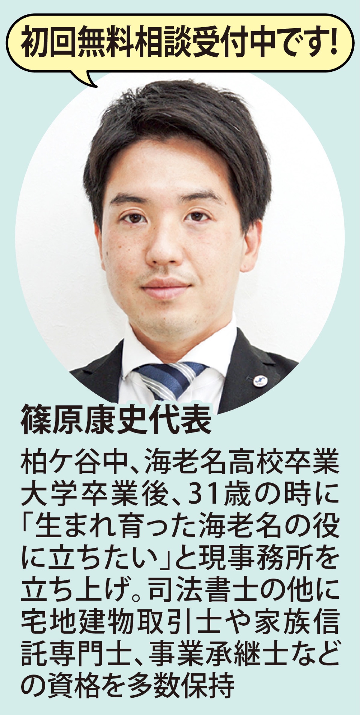 一口に相続といっても、家庭ごとに課題や問題は様々で、予め準備をしておくことで、未然に予防予測できることがある。篠原代表は「まちの司法書士事務所は、名前のとおり『親しみやすさ』をモットーに、多職種と課題解決に向き合います。初回相談料は無料となっておりますので、気軽にご相談ください」と話している。