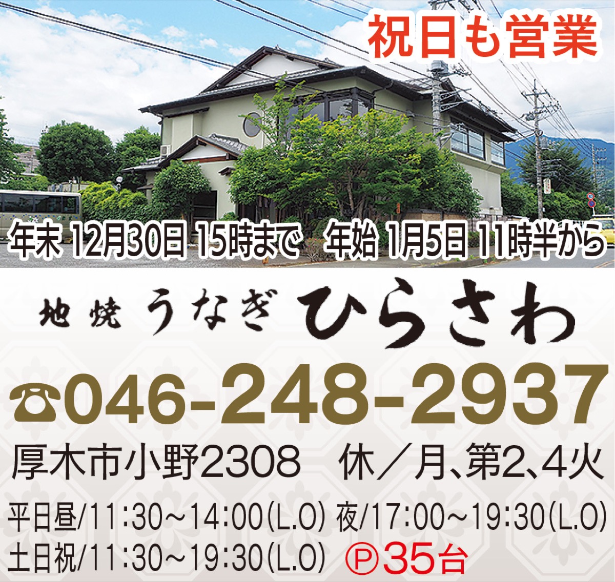野趣の溢れる、美味しい本物のうなぎを―。厚木市小野の「地焼うなぎ ひらさわ」はこだわりの『地焼うなぎ』が評判。
