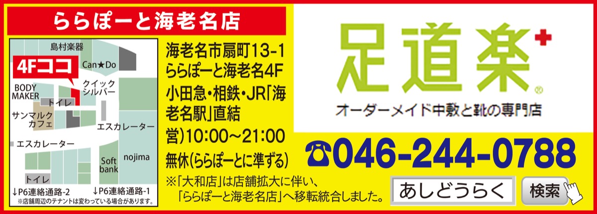 足を宙に浮かせて作る「無加重作成システム」は、本来の足の形に合わせて中敷を作成。60分で即日お渡し可能。「病院に通っているのに良くならない」。様々な場所に出掛ける機会が増える秋に向けて、足道楽プラスに相談してみませんか。