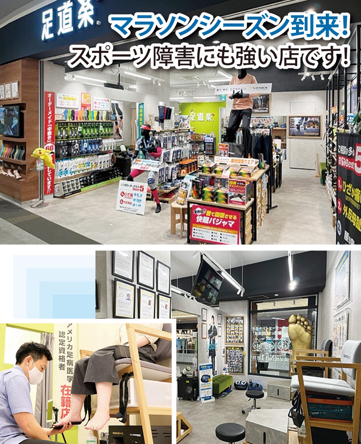 おかげさまで1周年を迎えた中敷と靴の専門店「足道楽+」。ひざ関節の痛みから身体の痛みまでも軽減する効果に遠方から来店する方も多い。「足道楽+」では、骨格を矯正し痛みを軽減する”オーダーメイド中敷”と、ひざ痛を楽にする靴など、足に良い靴をそろえている。数あるインソールの中でも「自分の足型を作るタイプ」はこの店のものだけ。外反母趾、O脚やX脚等の足の悩みから腰痛、冷えなどにも効果があるという。