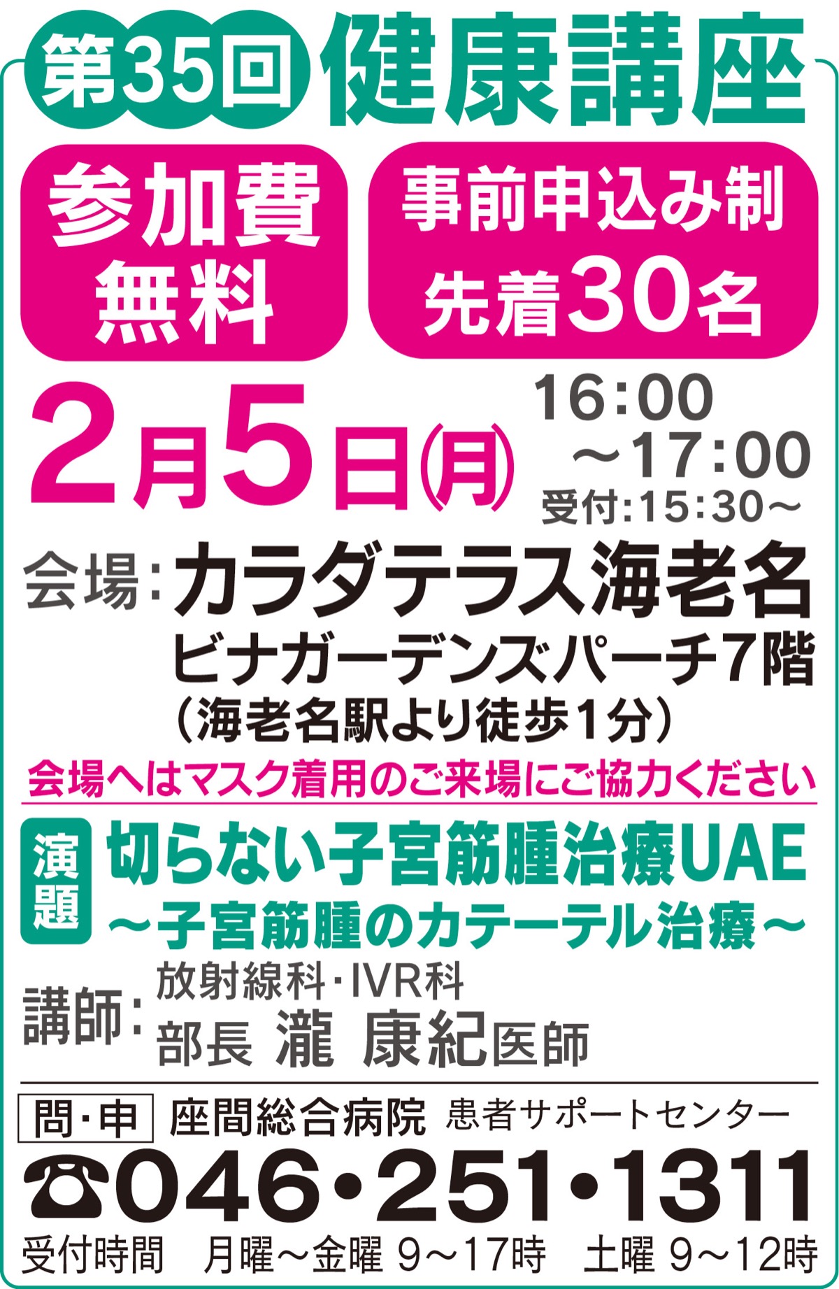 医療の最新情報や予防の知識を得られる座間総合病院の無料健康講座が2月5日(月)、カラダテラス海老名で開かれる。