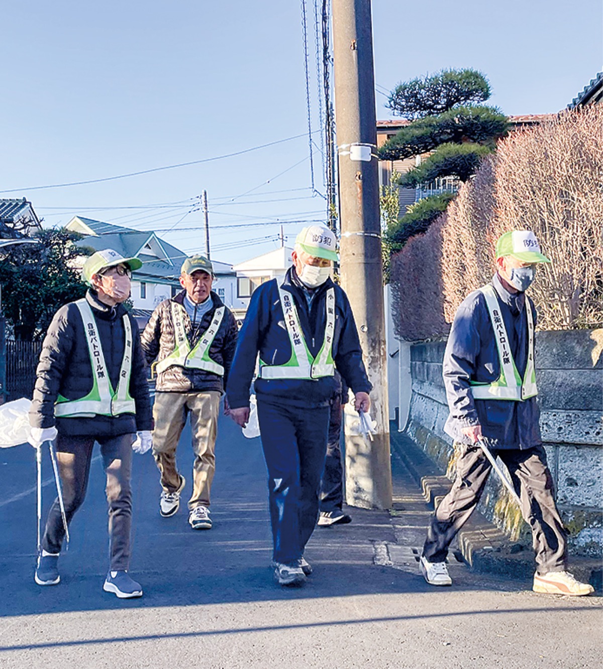 綾瀬市小園南地区で地域の防犯活動にあたる小園6区自衛パトロール隊(溝口修隊長=人物風土記で紹介)が1月25日、県の犯罪のない安全・安心まちづくり功労者表彰を受賞した。パトロール隊の結成以来、21年間休むことなく続けている週6日のパトロールや住民向けの啓発活動が他の模範になるとして評価された。