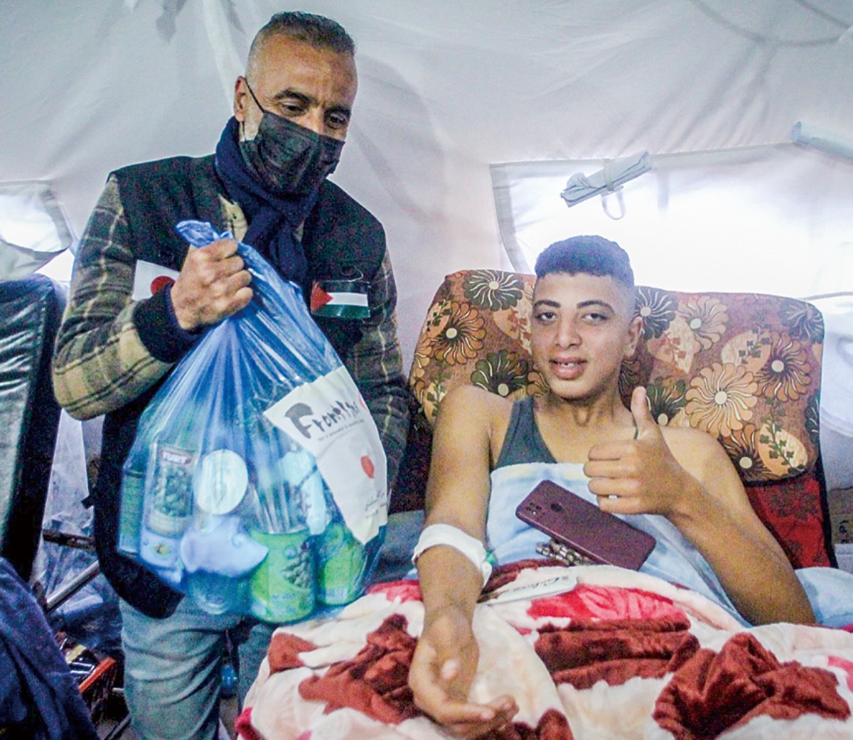 今年1月末に現地スタッフに支援金を送金。ラファにあるエル・ナジャール病院にいる患者65人の1カ月分にあたる米と小麦粉、砂糖、豆や肉の缶詰などを同病院に届けた。