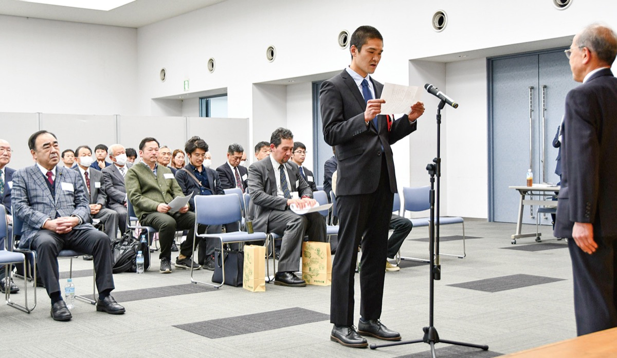永年勤続表彰では、泉橋酒造(海老名市)の犬塚晃介さんと井上酒造(大井町)の高野邦弘さんが表彰を受けた。犬塚さんは、「こうした席で表彰を受けるのは身に余る光栄。微力ながらこれからも神奈川県の酒造りに尽くしていきたい」と話していた。