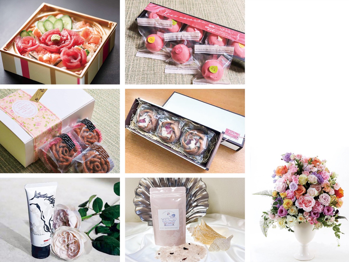 同事業は、市の花である「バラ」の認知向上や地域の活性化を目的とした商品開発を後押する補助金制度として実施された。「バラ」をテーマに市内に店舗を構える事業者を対象に昨年4月からアイデアを募り、菓子や造花、バスソルトなどバラエティに富んだ新商品が開発された。