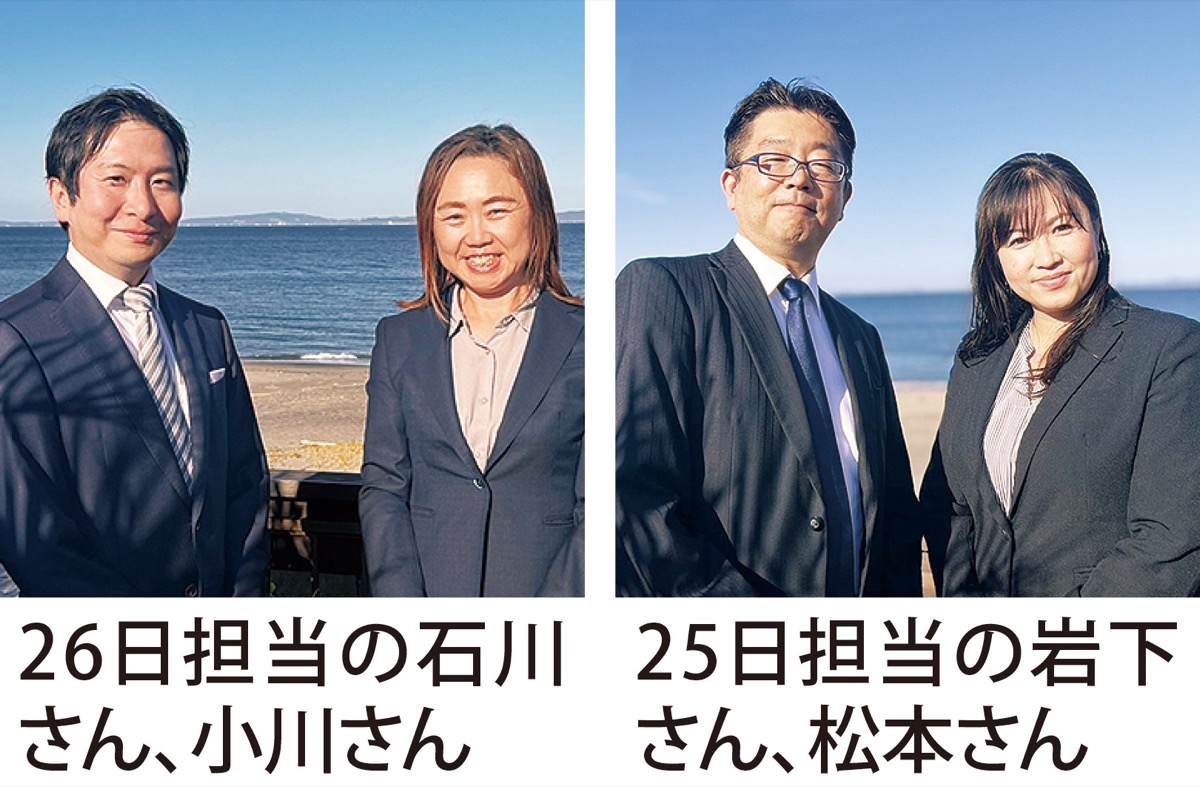定員は各日6人(20歳以上)。筆記用具を持参で参加を。講師は業界歴18年の岩下剛さん、同13年の小川亜紀子さん、同12年の石川直人さん、同9年の松本美紀さん。講師は各日2人。「お金に関わる不安や悩みの解決に、セカンドオピニオンとしても活用してもらえた」と岩下さん。参加者にはお茶、菓子付き。