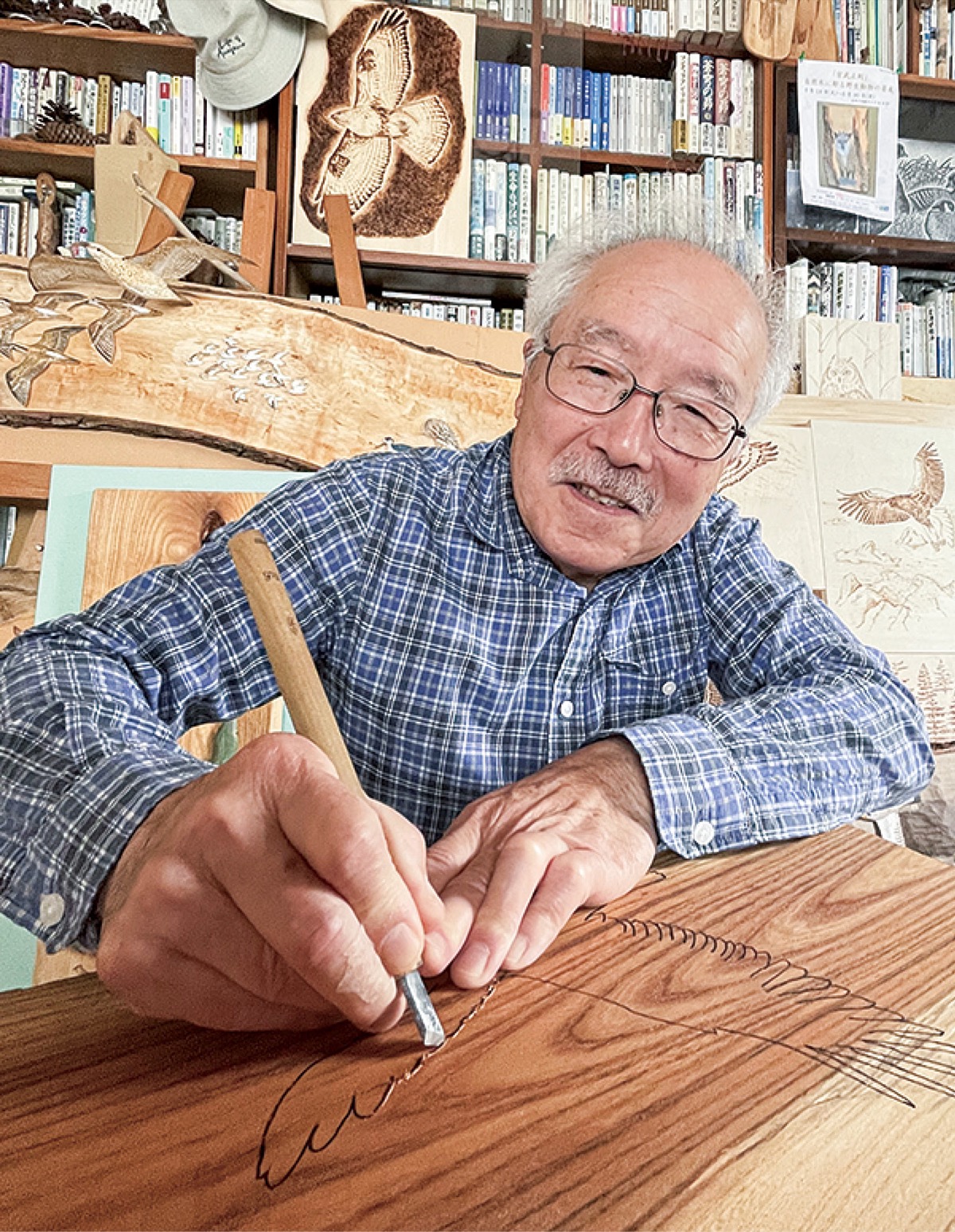 自然木を利用したレリーフ創作に取り組む海老名市国分南在住の宮武正則さん(78)が、6月18日から30日まで作品展「自然木に彫る野生生物の姿」を県立相模原公園サカタのタネグリーンハウス内のギャラリーで開催する。宮武さんの作品展は10年ぶり2度目で、「作品を通して野生生物の命の美しさを伝えたい」と話している。