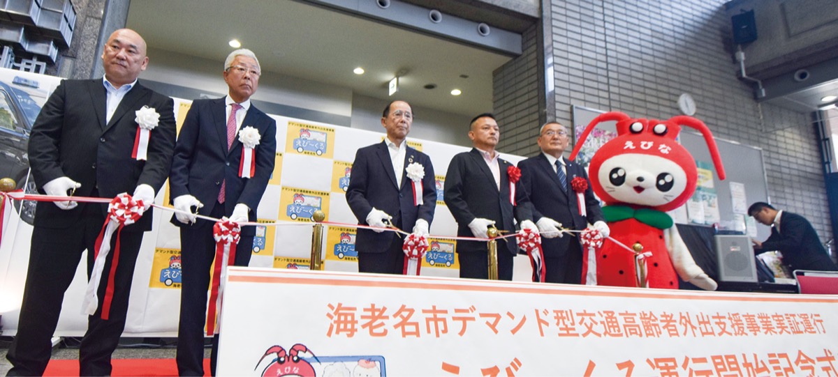 市役所での運行開始記念式典で内野優市長は「高齢者が、笑顔で暮らすひとつの方法。どうか広めてほしい」とあいさつ。運行を担う(株)ハートフルタクシーの飯田隆明代表取締役は「一人でも多くの方に登録してほしい。安心安全な運行をしてまいります」と語り、(株)海老名相中の石川哲也代表取締役は「新しい外出の選択肢。明るく活発な生活を下支えしたい」と述べた。