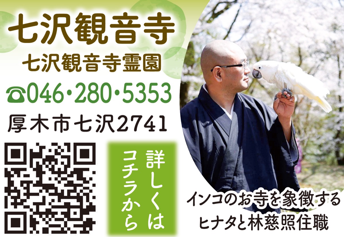 七沢温泉観光の一つにもなっている「インコのお寺」七沢観音寺。同寺は丹沢大山国定公園内に位置し、自然豊かな七沢温泉街の山裾にある。