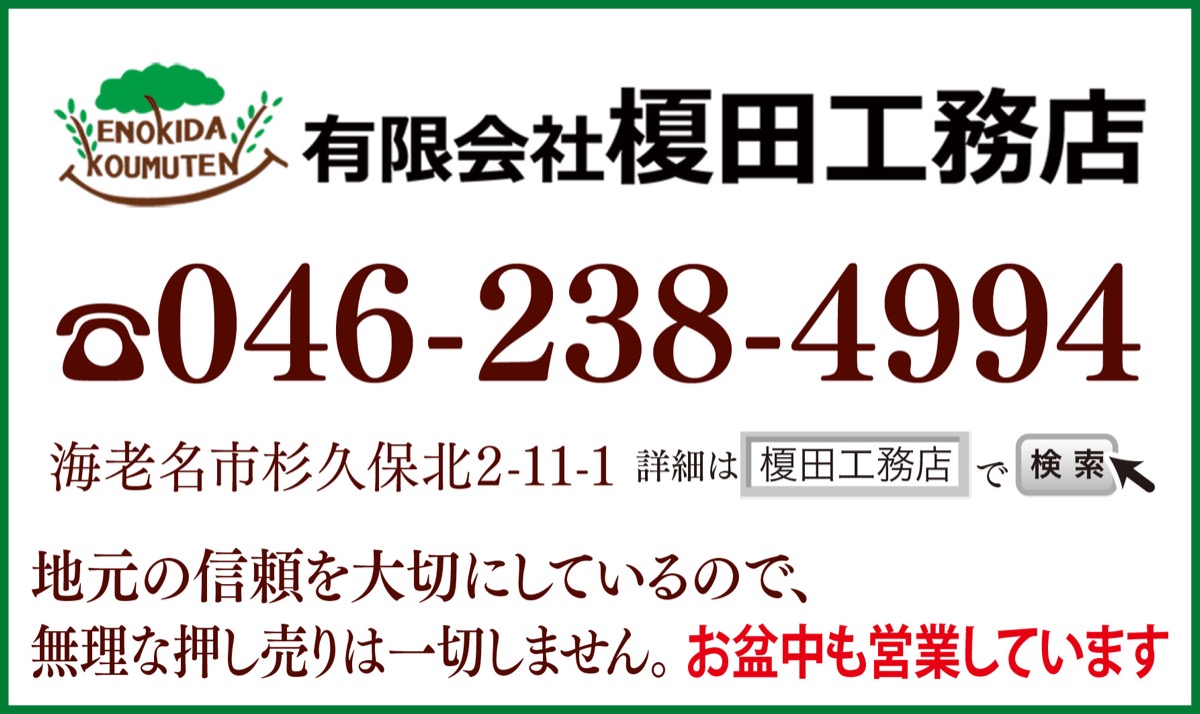 「気になるけど、こんな小さいことを頼んでも良いのかな?」「リフォームをしたいけれど、どこに頼んで良いのか分からない」―。そんな方は、海老名市杉久保北にある創業49年の「(有)榎田工務店」に相談してみてはいかが。