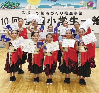 リーダーの秋葉咲季さん(小6)は「3位入賞はとてもうれしい。今後に出場する大会でも自信を持って演技したい」と話した。