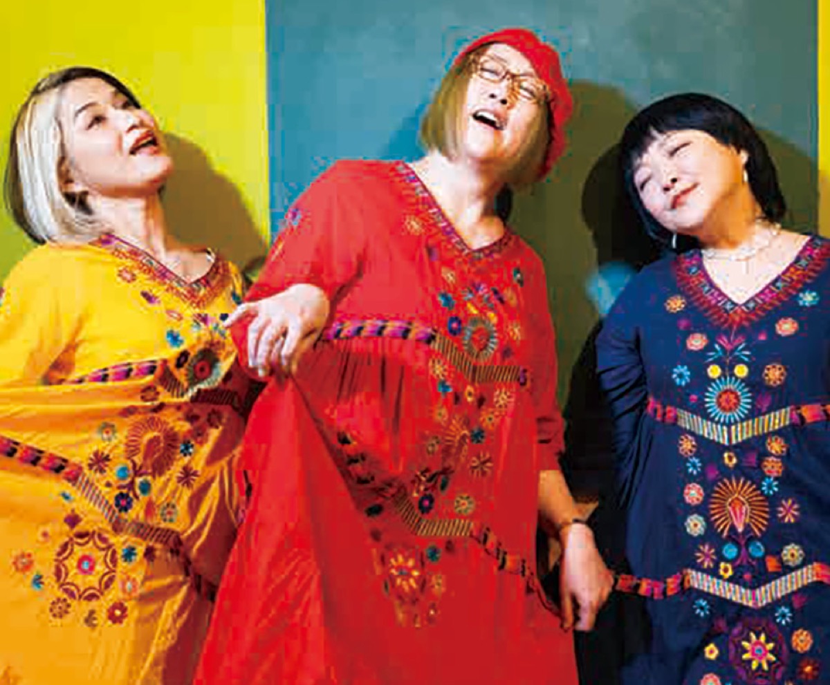 「にじ」のうた(コロムビアキッズ)でおなじみの”まこりん”こと高瀬麻里子が率いるハモリ女子3歌楽坊、トランスパランス(=写真)が「小さな世界」「となりのトトロ『さんぽ』」などを歌って演奏する。