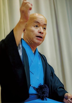 毎回好評の善通寺関東別院の法話会。今年の締めは12月22日(日)、落語家桂こけ枝さんによる落語&法話会。弘法大師も登場する斬新な噺でひと笑いさせる。「ささやかですがお接待を用意してます」と岩崎主監。午後1時から。問合せは左記。