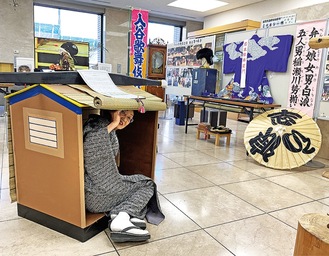 座間市で活動する入谷歌舞伎会(島村利明会長=人物風土記で紹介=)の舞台用品がこのほど座間市役所に展示された。