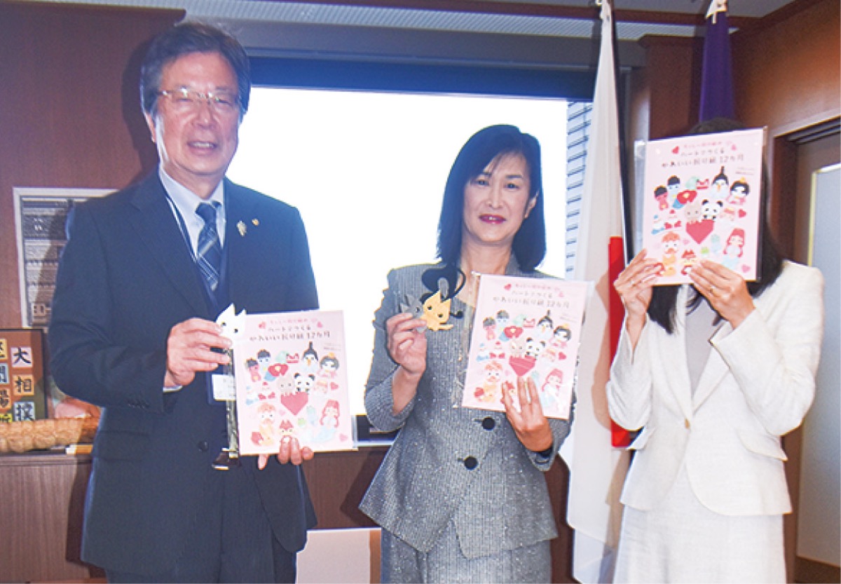 座間市出身で、SNSなどで人気を集める折り紙作家のちっしー折り紙さんが12月17日に座間市役所を訪れ、自身による新刊「ハートでつくるかわいい折り紙12カ月」(ブティック社)21冊を寄贈した。