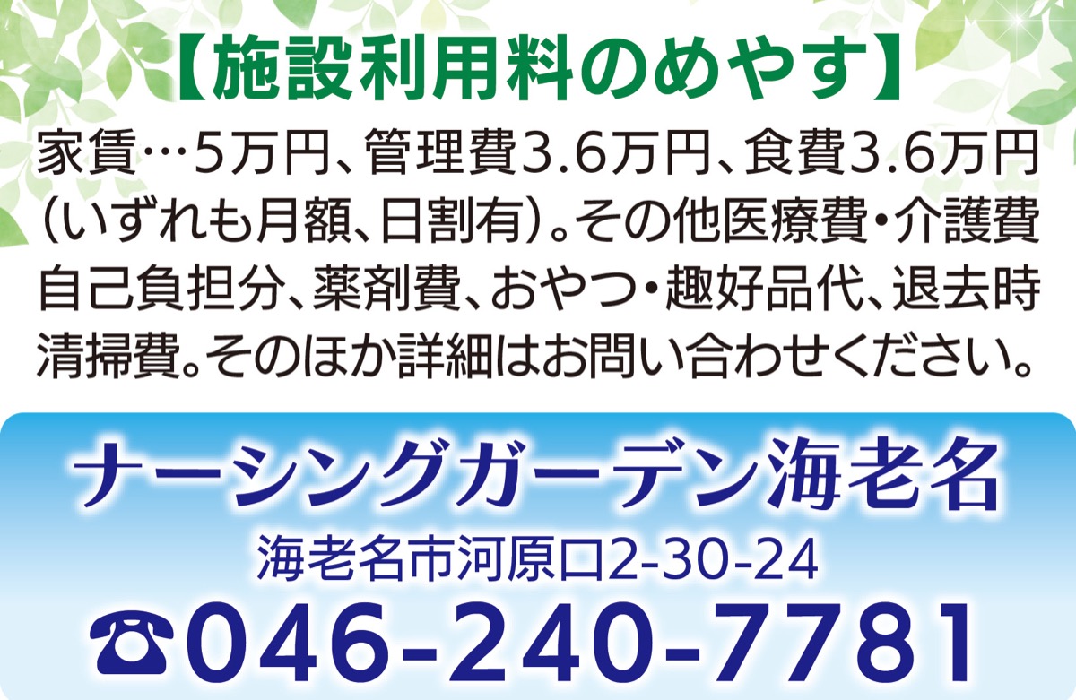 末期のがんの方や神経難病の方に緩和ケア等を提供する住宅型有料老人ホーム「ナーシングガーデン海老名」が昨年12月、厚木駅近くの海老名市河原口に開設した。
