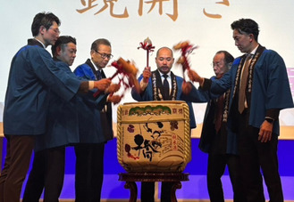 来賓を交えた鏡開きも行われ、会場は賑やかな雰囲気に包まれた。