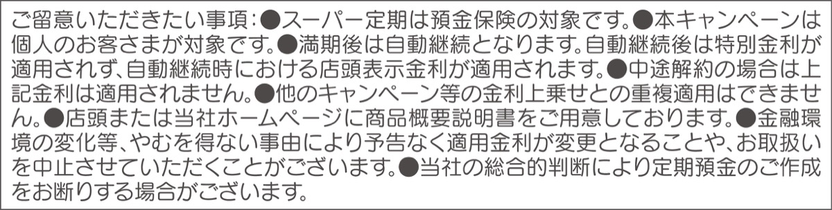 スルガ銀行の県内店舗窓口でスーパー定期(預入期間1年)を預入100万円以上で申し込むと0・9%の特別金利に。さらにスルガで給与や年金の受取実績といった条件クリアで年利が1・0%となる特別企画。