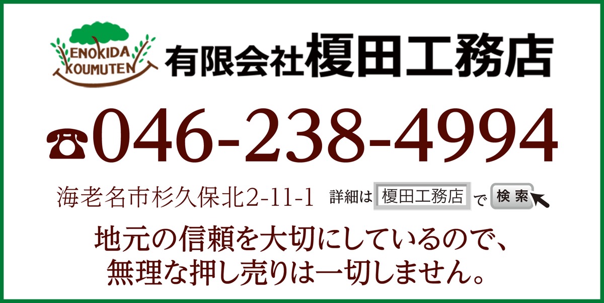 「気になるけど、こんな小さいことを頼んでも良いのかな?」「リフォームをしたいけれど、どこに頼んで良いのか分からない」―。そんな方は、海老名市杉久保北にある創業50年の「(有)榎田工務店」に相談してみてはいかが。