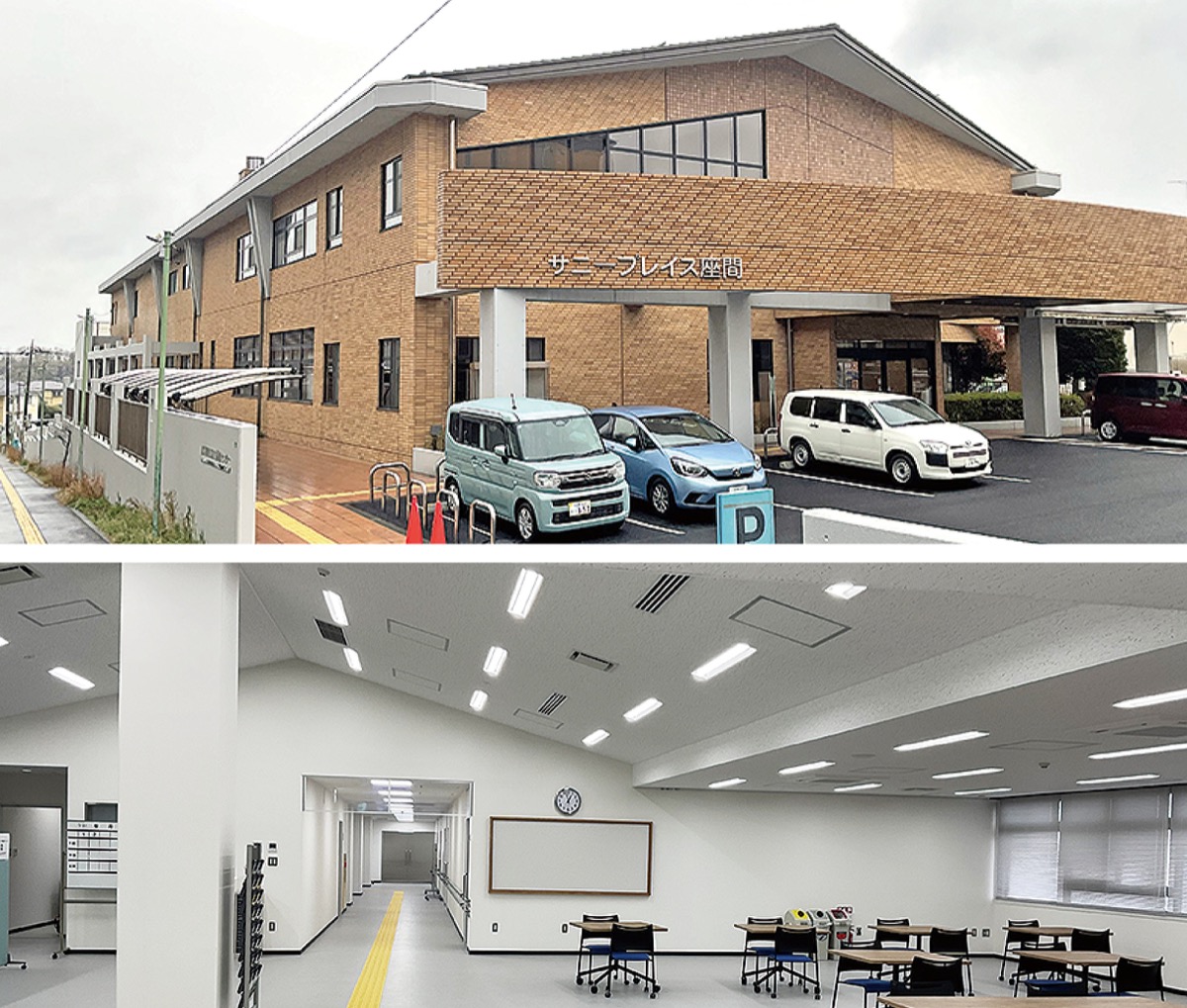 サニープレイスは2000年築で、市の公共施設再整備計画に基づいて複合化した。近隣にあった旧青少年センターの建物は1974年築で、老朽化を理由に今後5年以内に解体される予定。