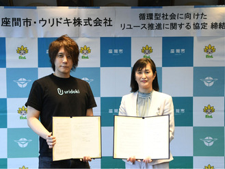 座間市と買取一括査定サービスを行うウリドキ(株)(木暮康雄代表取締役・東京都新宿区)が4月、リユース活動の推進に向けた連携と協力に関する協定を締結した。