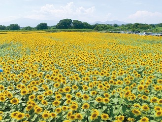 畑は地元農家などによる「ひまわり推進協議会」が種まきや雑草取りなどの世話を続けている。品種は「ハイブリッドサンフラワー」で高さは1・5mほど。会場には展望台が設置され、一面の黄色を見渡せる。咲き終わった後は肥料(緑肥)として土に混ぜ、小麦などを育てるという。