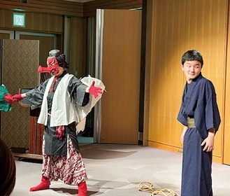 当日は古典落語を題材にした「天狗裁き」と「安兵衛キツネ」の2作品を上演。会場に用意された60席は埋まり、立ち見客も見受けられた。団員が歓声や拍手に包まれ、和やかな雰囲気の中で劇が進んだ。