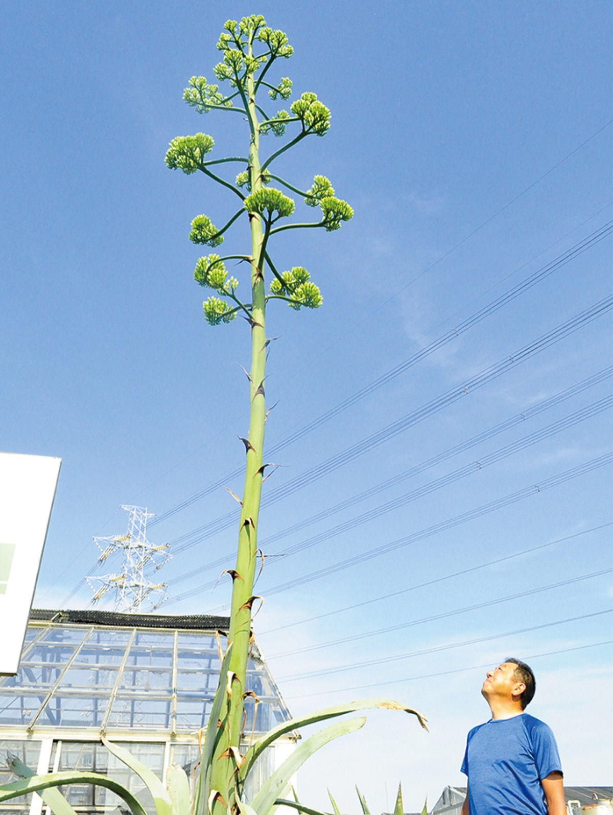 清水さんは「私自身も50代で、小さなころから見てきた。リュウゼツランと一緒に成長してきたと感じている。花を咲かせるのが楽しみで、待ち遠しい」と期待に胸を膨らませている。