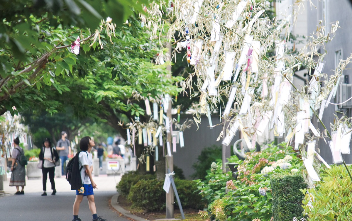 座間市相模が丘の仲よし小道「さくら百華の道」が、7月5日と6日七夕飾りで彩られた。新生さくら道の会が中心となった七夕まつり実行委員会(岩崎秀也委員長)が呼びかけ、地元小中学校や幼・保育園などが参加。500mの道に約40本の飾りが立てられた。「陸上選手になれますように」「すいっち2があたりますように」「世界から戦火を無くして」など願いを込めた約千枚の短冊がサラサラと揺れ、通行人が足を止めて見入っていた。