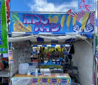 8月9日(土)から11日(月)に開催されるひまわりまつり会場で、例年好評の冷凍パインを販売。今回は1本500円の販売利益を帽子の購入費用に充てる事にした。限定4千本。ひまわりまつりは午前9時30分〜午後5時に座架依橋南北の座間エリアと四ツ谷エリアで開かれる。