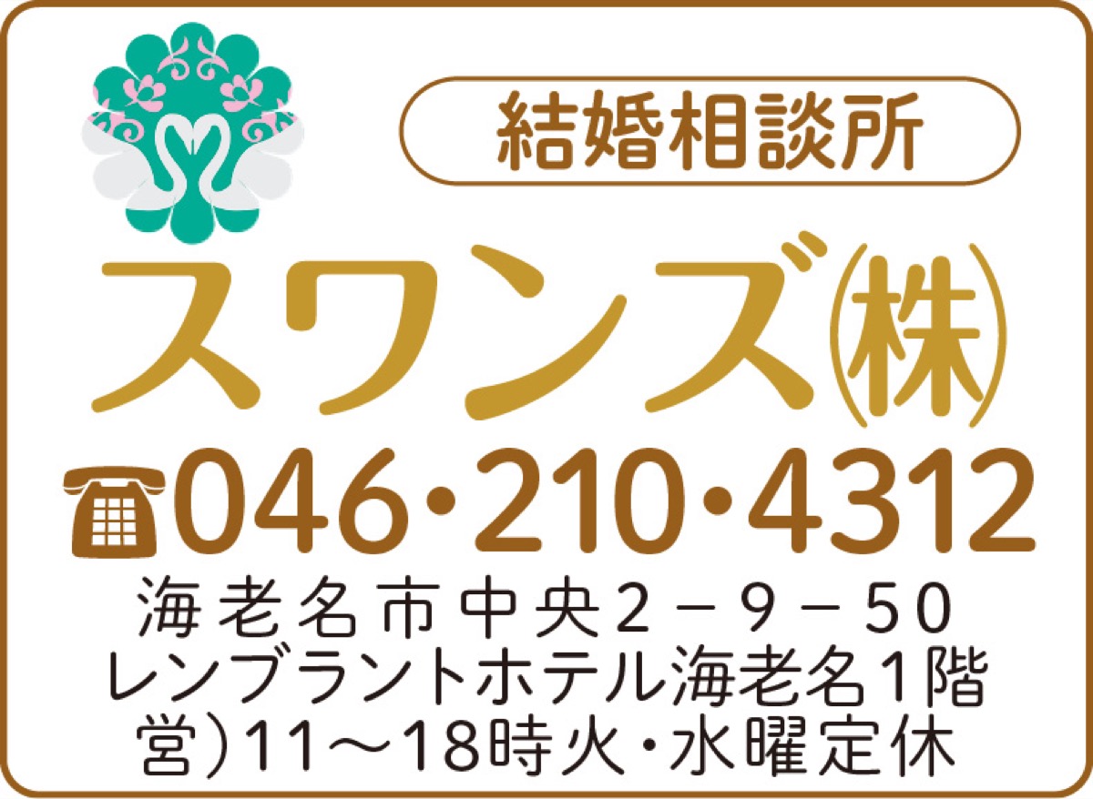 「今年こそ素敵な出会いを」と考えている人は、レンブラントホテル海老名内にある「スワンズブライダル」へ。地元で17年の実績と信頼で、多くのカップルを成婚に導く佐藤代表は「年内のゴールインも間に合います。本気で結婚を考えている方や親御さんはぜひご連絡を」と話す。