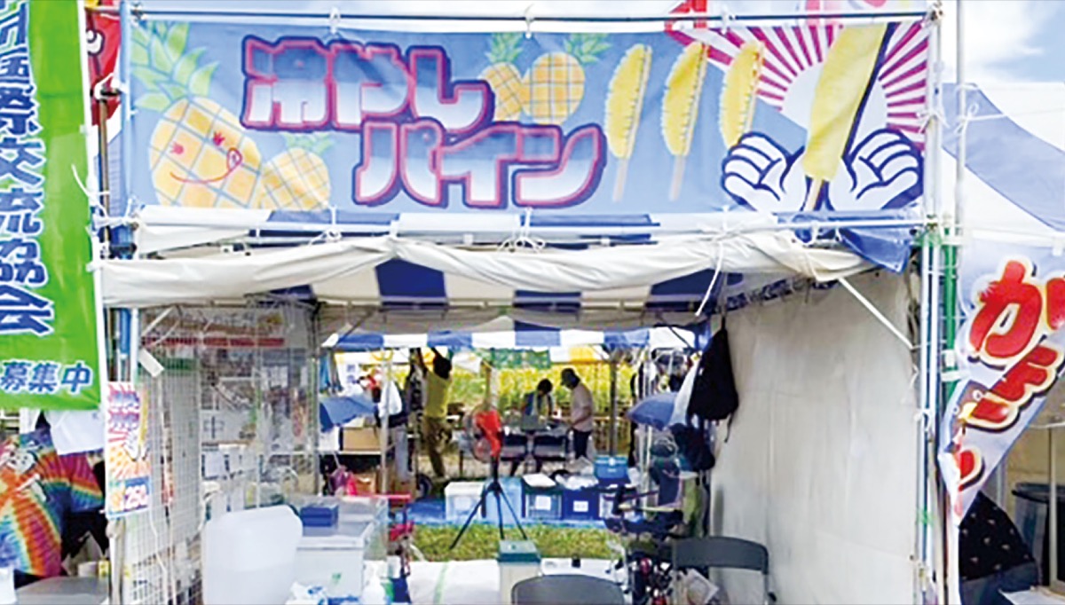 8月9日(土)から11日(月)に開催されるひまわりまつり会場で、例年好評の冷凍パインを販売。今回は1本500円の販売利益を帽子の購入費用に充てる事にした。限定4千本。ひまわりまつりは午前9時30分〜午後5時に座架依橋南北の、座間エリアと四ツ谷エリアで開かれる。