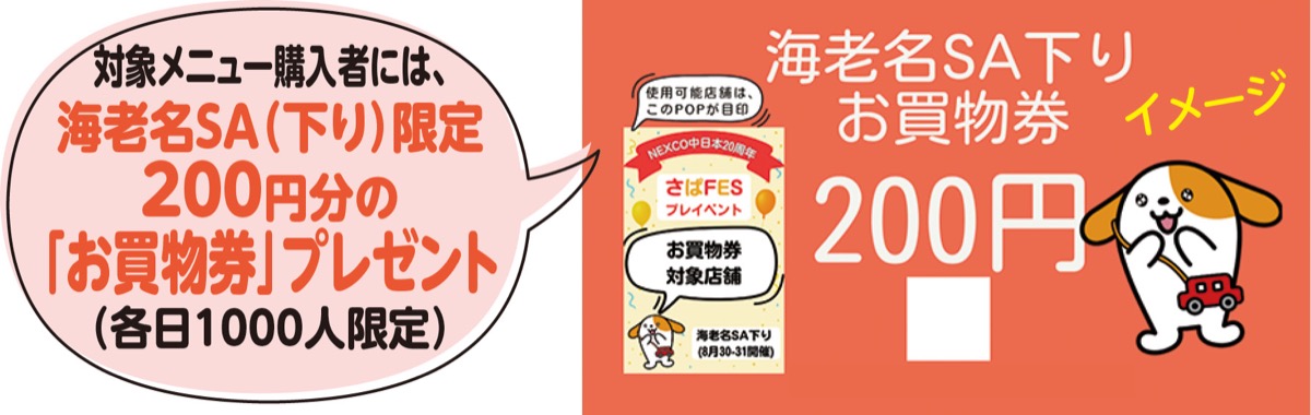 両日は飲食店の対象メニューが料金はそのままで「増量」になる。さらに対象メニューの購入者には、海老名SA(下り)限定で使える200円分の「お買物券」がプレゼントされる(各日1000人限定)。
