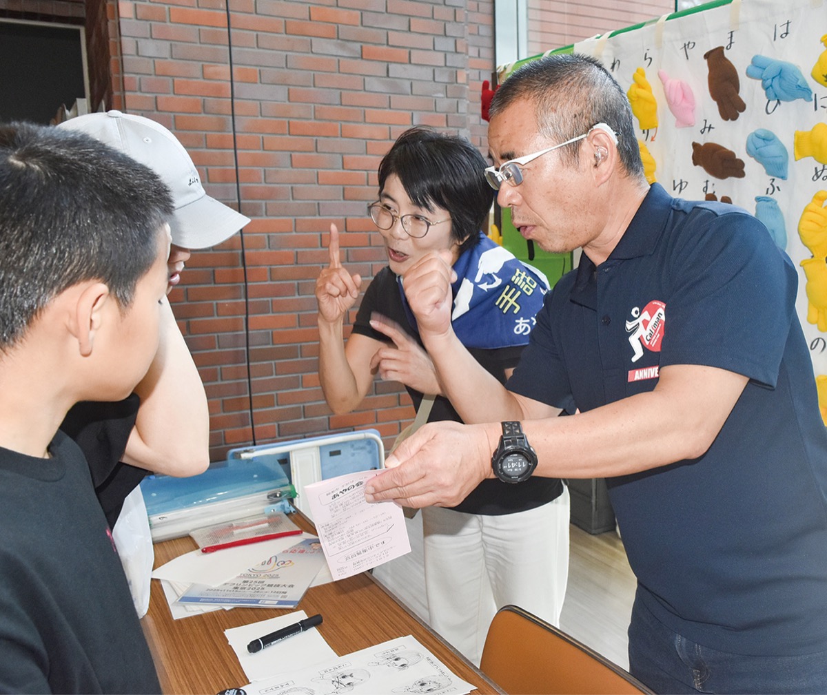 館内では点字のメッセージカードづくりや雑貨販売などが賑わいを見せ、消防車との記念撮影が親子連れに人気だった。福祉関連団体の出店も軒を連ねた。焼き鳥を売る団体は「とても盛況で完売した。今後の活動費に役立てたい」を笑顔を見せた。親子連れの来場者は「今まで接点のなかった福祉団体とふれあえた」と話していた。