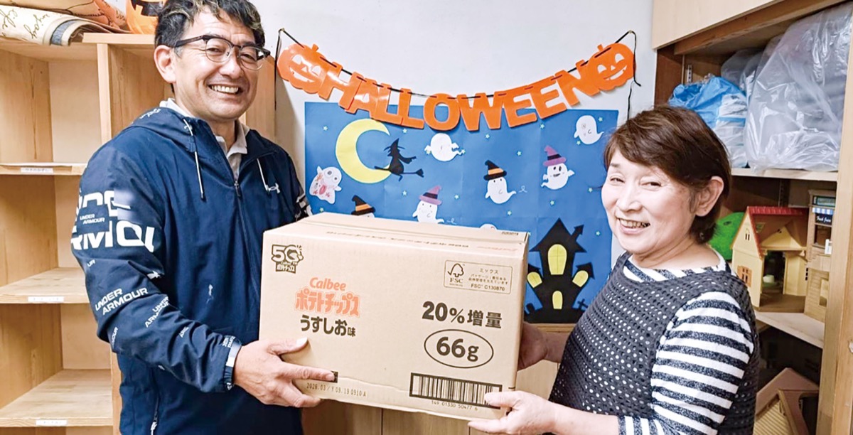 海老名市杉久保北の(有)榎田工務店が10月16日、カルビーのポテトチップスを市内の学童クラブなど5施設に送った。ポテトチップス販売50周年のカルビーはSNSを通じて、同じ50周年の企業と節目を祝い合うキャンペーンを実施、祝いのメッセージを投稿しあった。その後榎田工務店には段ボール5箱分のポテトチップスが到着したという。榎田成社長は「奇跡的なご縁でつながることができ、光栄です。地域を担う子供たちが笑顔になってくれれば」と語った。