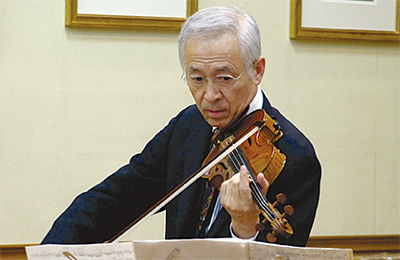元NHK交響楽団のヴァイオリニスト・公門俊之さんを招いた十五夜コンサートが、9月12日に座間神社会館すいめいで開かれ、市内外から100人ほどが来場した。
