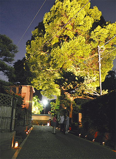 同地域は神社仏閣が点在し、歴史ある街並みが残る。平成8年から15年まで「街なみ環境整備」が行われ、16年に「国土交通省 都市景観大賞」の優秀賞を受賞。今年6月には試験点灯が行われ、住民の賛同を経て今回の実施となった。また、観光資源のフィールド調査で同地域に注目する松蔭大学の学生も企画や製作に携わっている。
