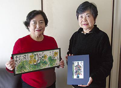 野菊の会は、12年ほど前に発足したサークル。東原コミュニティセンターを拠点に活動しており、14人が在籍。同会を立ち上げ、現在は講師を務める村上みち子さんの指導のもと、アイデア溢れる絵手紙の制作に取り組んでいる。
