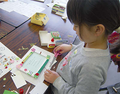 座間市立青少年センターで3月17日にフォトフレーム作りが開催され、子どもたちが思いおもいのオリジナル写真立てを作った。