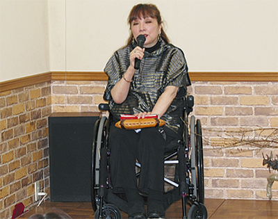 上映終了後には、りべるて響会のソプラノ歌手遠田歌子さんが、「花は咲く」と「ふるさと」を熱唱。サビを来場全員で合唱すると、会場は盛り上がりを見せていた。また、観客として来場していた車イス女優・萩生田千津子さんが特別に、宮澤賢治の「雨ニモマケズ」などを朗読した。